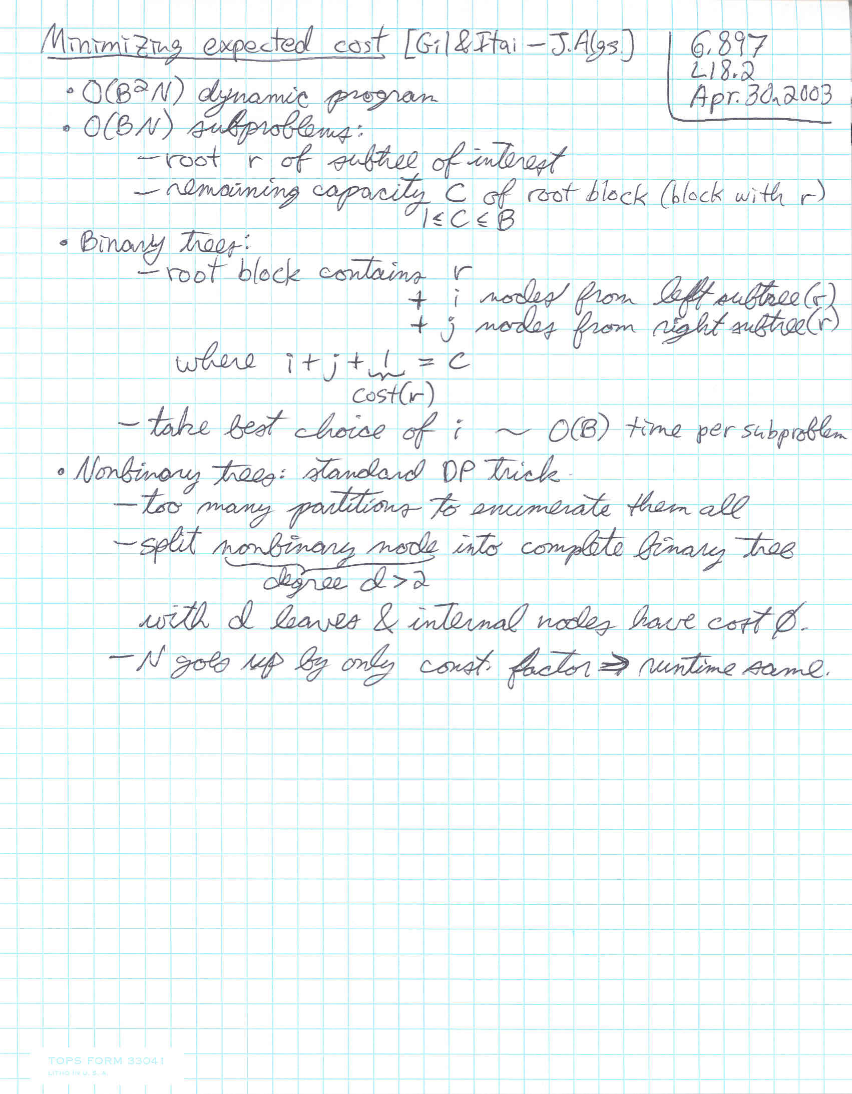 These are rough, personal lecture notes handwritten by Erik Demaine used during lecture. Their primary purpose is for reading/review by students before the scribe notes (which are more complete) become available. See the scribe notes page. Accessibility