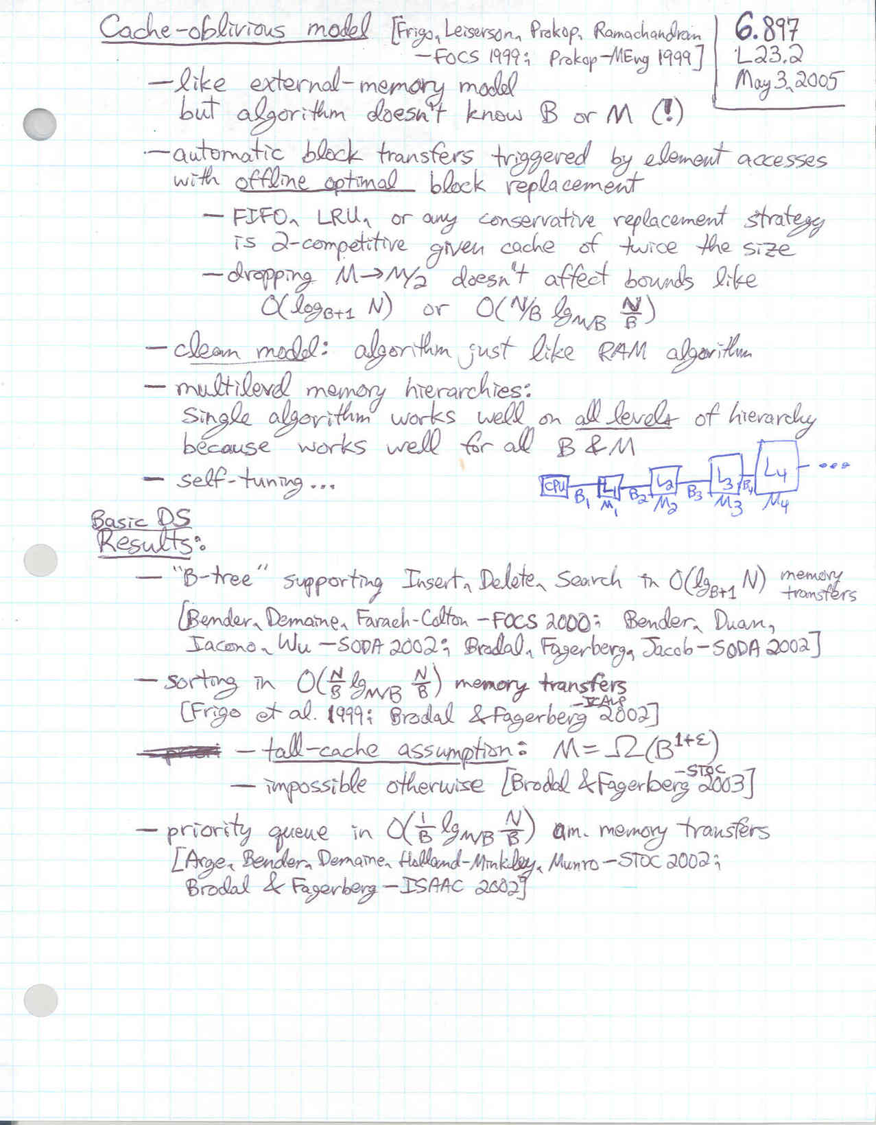 Lecture 23: External memory / cache-oblivious: cache-oblivious B-trees